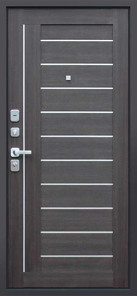Надежная входная Дверь Дуэт орех рифленый премиум класса по цене 44 435 руб. Большая толщина стали защитит от проникновения в ваш дом, квартиру или коттедж. Используется очень качественная фурнитура: замки, цилиндры, ручки, защелки. Покрытие и отделка двери изготовлено под внимательным контролем производителя. Дверь имеет долгий срок службы и гарантию.