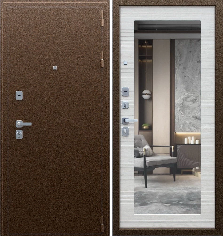 Надежная входная Дверь Спартак с зеркалом Акация Светлая Поперечная премиум класса по цене 35 935 руб. Большая толщина стали защитит от проникновения в ваш дом, квартиру или коттедж. Используется очень качественная фурнитура: замки, цилиндры, ручки, защелки. Покрытие и отделка двери изготовлено под внимательным контролем производителя. Дверь имеет долгий срок службы и гарантию.