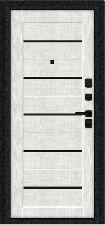 Надежная входная Дверь Браво Борн/SBlack Букле черное/Bianco Melinga премиум класса по цене 30 935 руб. Большая толщина стали защитит от проникновения в ваш дом, квартиру или коттедж. Используется очень качественная фурнитура: замки, цилиндры, ручки, защелки. Покрытие и отделка двери изготовлено под внимательным контролем производителя. Дверь имеет долгий срок службы и гарантию.