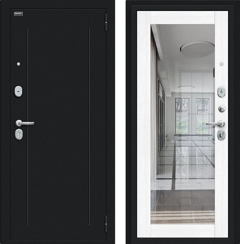 Надежная входная Дверь Браво Флэш Букле черное/Snow Melinga премиум класса по цене 32 385 руб. Большая толщина стали защитит от проникновения в ваш дом, квартиру или коттедж. Используется очень качественная фурнитура: замки, цилиндры, ручки, защелки. Покрытие и отделка двери изготовлено под внимательным контролем производителя. Дверь имеет долгий срок службы и гарантию.