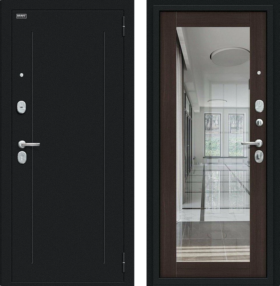 Надежная входная Дверь Браво Флэш Букле черное/Wenge Veralinga премиум класса по цене 32 385 руб. Большая толщина стали защитит от проникновения в ваш дом, квартиру или коттедж. Используется очень качественная фурнитура: замки, цилиндры, ручки, защелки. Покрытие и отделка двери изготовлено под внимательным контролем производителя. Дверь имеет долгий срок службы и гарантию.