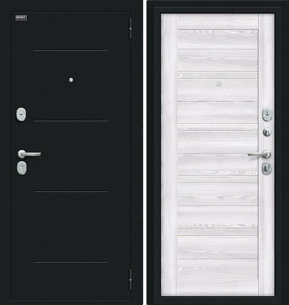 Надежная входная Дверь Браво Сити Kale Букле черное/Riviera Ice премиум класса по цене 34 935 руб. Большая толщина стали защитит от проникновения в ваш дом, квартиру или коттедж. Используется очень качественная фурнитура: замки, цилиндры, ручки, защелки. Покрытие и отделка двери изготовлено под внимательным контролем производителя. Дверь имеет долгий срок службы и гарантию.
