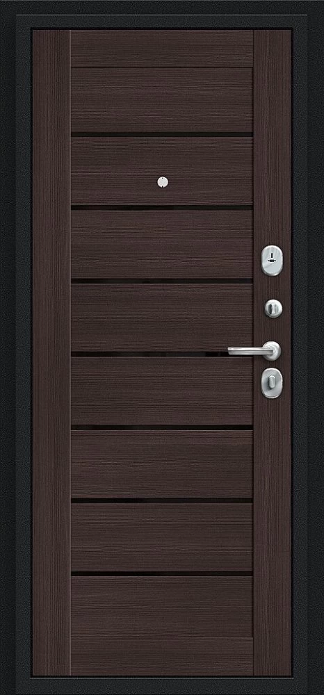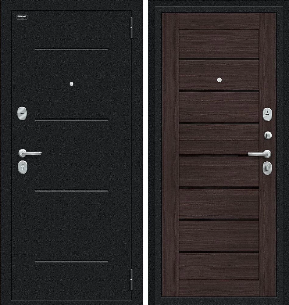 Надежная входная Дверь Браво Техно Букле черное/Wenge Veralinga премиум класса по цене 30 785 руб. Большая толщина стали защитит от проникновения в ваш дом, квартиру или коттедж. Используется очень качественная фурнитура: замки, цилиндры, ручки, защелки. Покрытие и отделка двери изготовлено под внимательным контролем производителя. Дверь имеет долгий срок службы и гарантию.