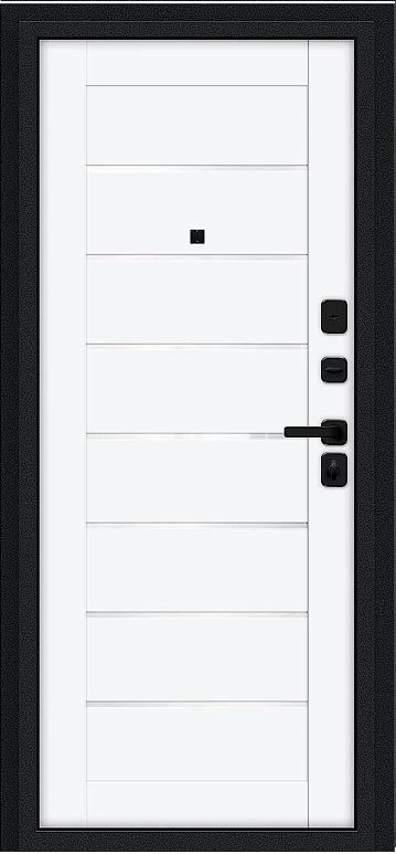 Надежная входная Дверь Браво Техно/SBlack Букле черное/White Silk премиум класса по цене 32 885 руб. Большая толщина стали защитит от проникновения в ваш дом, квартиру или коттедж. Используется очень качественная фурнитура: замки, цилиндры, ручки, защелки. Покрытие и отделка двери изготовлено под внимательным контролем производителя. Дверь имеет долгий срок службы и гарантию.