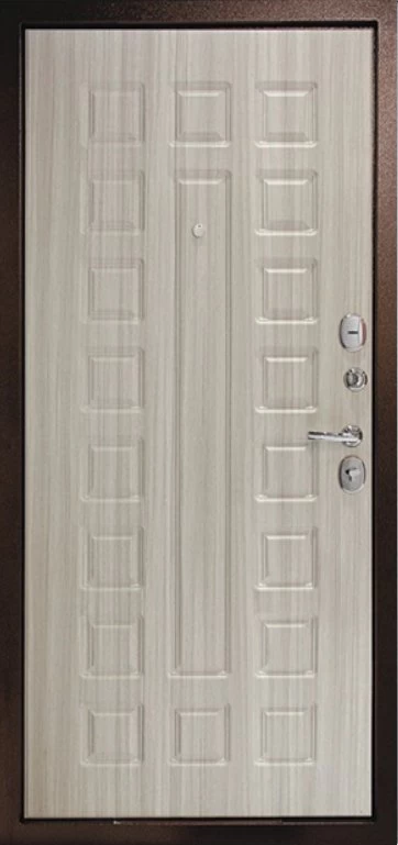 Надежная входная Дверь Рубикон 1 Медь Сандал белый премиум класса по цене 32 255 руб. Большая толщина стали защитит от проникновения в ваш дом, квартиру или коттедж. Используется очень качественная фурнитура: замки, цилиндры, ручки, защелки. Покрытие и отделка двери изготовлено под внимательным контролем производителя. Дверь имеет долгий срок службы и гарантию.