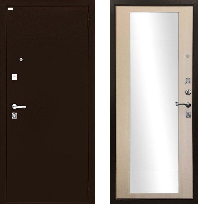 Надежная входная Дверь Ратибор Люкс Зеркало Экодуб премиум класса по цене 30 535 руб. Большая толщина стали защитит от проникновения в ваш дом, квартиру или коттедж. Используется очень качественная фурнитура: замки, цилиндры, ручки, защелки. Покрытие и отделка двери изготовлено под внимательным контролем производителя. Дверь имеет долгий срок службы и гарантию.