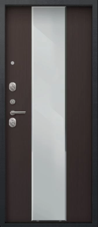 Надежная входная Дверь A-04 черный сатин - лиственница тёмная зеркало премиум класса по цене 33 535 руб. Большая толщина стали защитит от проникновения в ваш дом, квартиру или коттедж. Используется очень качественная фурнитура: замки, цилиндры, ручки, защелки. Покрытие и отделка двери изготовлено под внимательным контролем производителя. Дверь имеет долгий срок службы и гарантию.
