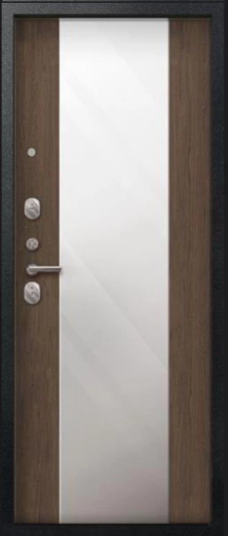 Надежная входная Дверь V-04 Черный муар - Миндаль Зеркало премиум класса по цене 42 035 руб. Большая толщина стали защитит от проникновения в ваш дом, квартиру или коттедж. Используется очень качественная фурнитура: замки, цилиндры, ручки, защелки. Покрытие и отделка двери изготовлено под внимательным контролем производителя. Дверь имеет долгий срок службы и гарантию.
