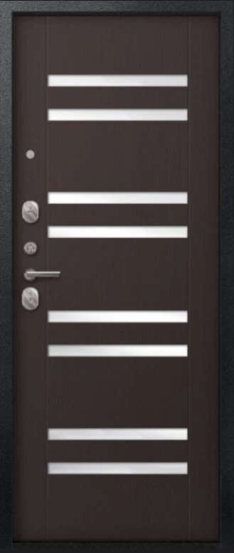 Надежная входная Дверь V-07 Черный муар - Темная лиственница премиум класса по цене 41 435 руб. Большая толщина стали защитит от проникновения в ваш дом, квартиру или коттедж. Используется очень качественная фурнитура: замки, цилиндры, ручки, защелки. Покрытие и отделка двери изготовлено под внимательным контролем производителя. Дверь имеет долгий срок службы и гарантию.