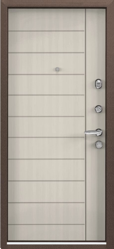 Надежная входная Дверь Цербер 3К(Чёрная) Горизонт Латте(Сменная панель) премиум класса по цене 41 935 руб. Большая толщина стали защитит от проникновения в ваш дом, квартиру или коттедж. Используется очень качественная фурнитура: замки, цилиндры, ручки, защелки. Покрытие и отделка двери изготовлено под внимательным контролем производителя. Дверь имеет долгий срок службы и гарантию.